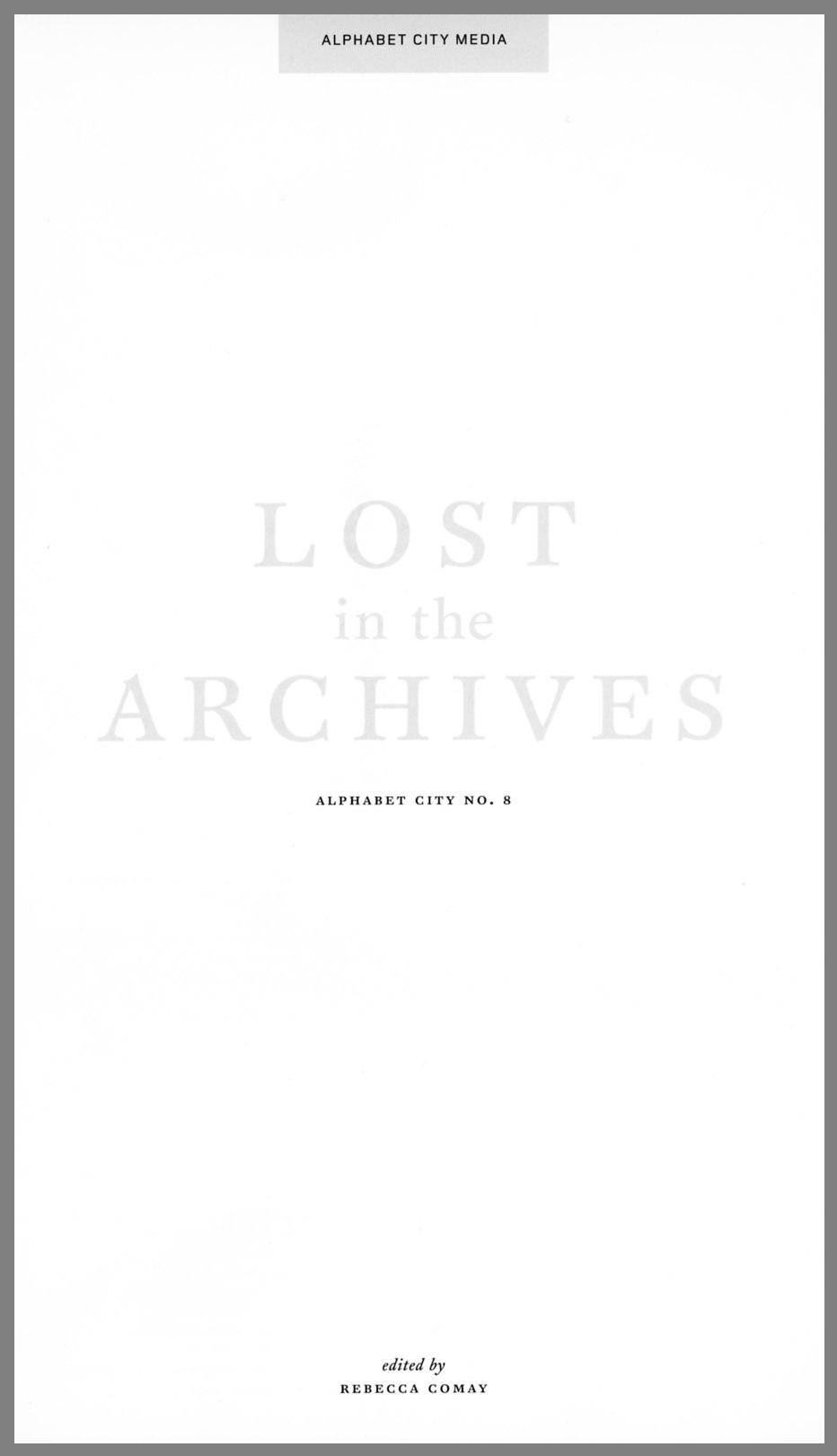 Lost in the Archives – Alphabet City (8), edited by Rebecca Comay, Alphabet City Media Inc., 2002